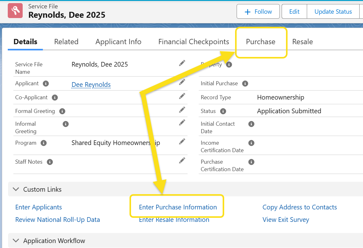 1. Click into the Purchase Tab OR "Enter Purchase Information" from the Custom Links section