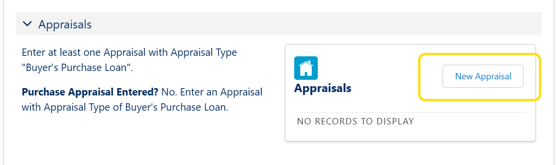 - There is also a check to make sure you've entered a Buyer's Purchase loan Appraisal.
