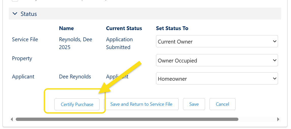 Certifying a Purchase is important because it provides a confirmation in your data that a buyer's purchase has taken place, and that your team has entered as much data as possible. You should not certify a purchase until you have entered all the information you have available. Certifying a Purchase also enables that Service File to roll up to the HomeKeeper National Data Hub. We will only include data from Service Files that have been certified (have a Certified Close Date).