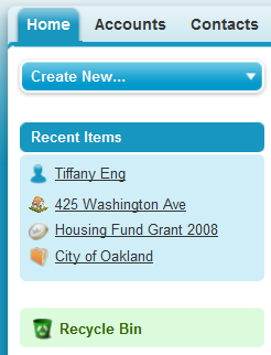 - Recent Items are links to the last 10 items you looked at. (Open/close Recent Items using “Alt” + “S” on keyboard.)