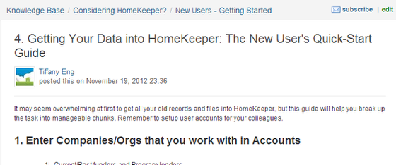 To know HomeKeeper is to use HomeKeeper. For a successful HomeKeeper implementation, you'll need to start entering data and using the system in order to remember what we went over during Orientation. To help: