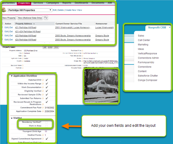 HomeKeeper is the system meant to make your life easier, so you're going to need to make sure it reflects your program. You can add or remove fields on any of the objects, (as long as they're not part of the National-Roll Up fields), move fields on the layout and create list views and reports that sort your information in ways that are important to you.