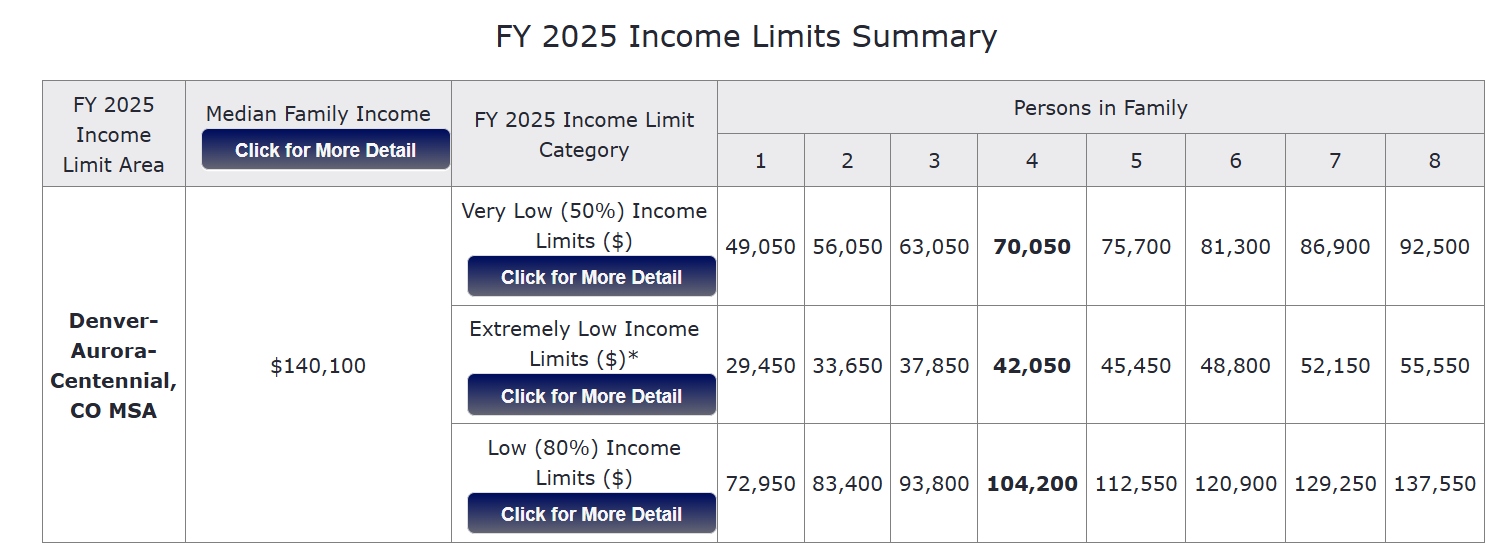 When you refer back to HUD Documentation, 80% (in this case, for Douglas County in Colorado), should be $83,400 based on their Income Limit Tables. Why is HomeKeeper calculating it at 74.48%?