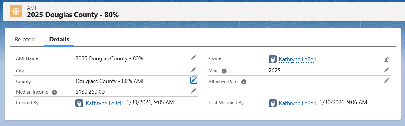 Also create a record for 80% and name the record and County as such. Note the difference in Median Income amount